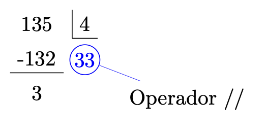 Agora com o operador de Divisão Inteira 135 // 4 = 33: